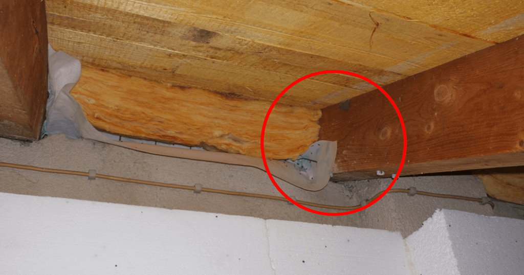 | Die Klimamembran wurde so kurz zugeschnitten, dass die Giebelwand weder erreicht noch angeschlossen werden konnte. | ![]() |