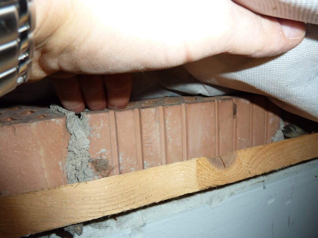 | Mauerkrone ohne Glattstrich, Hochlochsteine und Mörtelfugen sind kein geeigneter Untergrund, um eine Kleberaupe fachgerecht anzubringen. | ![]() |